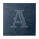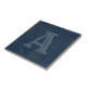 Ce carrelage en céramique rustique personnalisé est doté d'un arrière - plan texturé en cuir faux bleu avec une initiale monogrammée que vous pouvez personnaliser. Conçu par un artiste de renommée mondiale ©Tim Coffey.