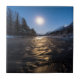 Décoré d'une image de la lune reflétant les eaux glacées de la rivière Portage lors d'une froide nuit d'hiver en Alaska. Par Ted Raynor