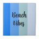 motif à rayures bleu cool et vert clair et un texte personnalisable disant : Vibes de plage. Convient à un style marin gai.