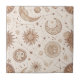 Carreau de céramique à motif botanique céleste élégant représentant des lunes, des étoiles, des planètes, des yeux mystiques et des branches feuillues délicates dans un style minimaliste noir et crème. Idéal pour les amateurs d'astrologie, les chercheurs spirituels, les passionnés de nature et tous ceux qui aiment l'esthétique céleste bohème.