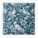 Carrelage en céramique dans un motif en carrelage continu - William Morris, papier peint Art Nouveau design de faisans et lièvres sertis entre feuilles, vignes et fleurs - texturé subtilement blanc sur un arrière - plan indigo / denim bleu