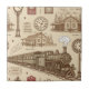 Carreau de céramique à motif de voyage classique avec des trains à vapeur, des horloges de gare, des bâtiments ferroviaires, des billets et des éléments de voyage vintage dans un style ancien. Idéal pour les amateurs de trains, les passionnés de chemin de fer, les amateurs d'histoire et tous ceux qui aiment l'esthétique du voyage nostalgique.