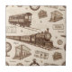 Carreau de céramique à motif de voyage classique avec des trains à vapeur, des horloges de gare, des bâtiments ferroviaires, des billets et des éléments de voyage vintage dans un style ancien. Idéal pour les amateurs de trains, les passionnés de chemin de fer, les amateurs d'histoire et tous ceux qui aiment l'esthétique des voyages nostalgiques.