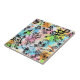 Carreau de céramique à motif patchwork de graffiti urbain coloré présentant des blocs abstraits audacieux, des coups de pinceau expressifs, des gribouillis, des étoiles et des textures multimédias dans des tons de bleu vif, jaune, rose, orange et noir. Énergique et audacieux avec une esthétique de street art moderne, ce design transparent est idéal pour les amateurs d'art graffiti, les fans de style maximaliste, les adolescents créatifs et les amateurs d'art contemporain.