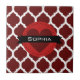 Motif en treillis marocain chic dans une couleur rouge foncé avec un étiquette plaque rouge et noir avec coeur pour vous permettre de personnaliser facilement votre nom sur. Un design motif à la mode qui ferait un cadeau personnalisé cool pour son anniversaire, la Saint-Valentin, Noël ou les cadeaux de fin d'études.
