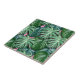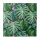Un carrelage en céramique avec un motif de feuilles philodendrons exotiques tropicaux en vert. Image numérique peinte à la main. Un soupçon de rose dans l'arrière - plan.
