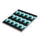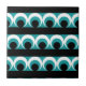 Geometric pattern illustration with stripes, circles and round shapes in turquoise, black and white colors