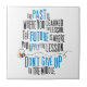 Citation d'une manière encourageante, avec la typographie espiègle. "Le passé est où vous avez appris la leçon, l'avenir est où vous appliquez la leçon, n'abandonnent pas au milieu" grand pour des étudiants !
