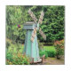 Un moulin vert très mignon comme décoration dans un jardin. Photo prise en avril 2019 à Woodburn, Oregon.