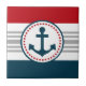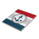Design nautique avec décoration d'ancre en forme ronde sur bleu, rouge, gris et blanc rayé arrière - plan