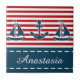 Design nautique avec voilier et décoration d'ancre sur arrière - plan rayé rouge et blanc
