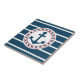 Design nautique avec décoration d'ancre en forme ronde sur bleu et blanc rayé arrière - plan