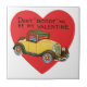 Illustration vintage Valentine's Day design de vacances avec un grand coeur rouge avec une voiture antique. Le texte dit : "Ne pas "esquiver" moi ... Sois Ma Saint-Valentin.