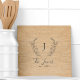 Nom de famille monogrammed de laurier personnalisé et année établie élégante rustique style campagnard chic maison de ferme ocre beige burlap modèle tuile. ++++++ Un cadeau de conservation moderne ou un décor de cuisine pour mariages, anniversaires, ménagères, Thanksgiving, Noël ou toute autre occasion.