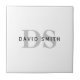 Carreau Nom et monogramme modernes | Blanc noir et gris