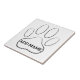 Version blanche de l'empreinte de patte. Modifiez le texte pour rendre cette tuile en céramique personnalisée avec le nom du chien.