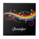 Une conception élégante et élégante de musique avec les notes musicales blanches flottant sur un arc-en-ciel de couleurs de tourbillonnement sur un arrière - plan noir. Perfectionnez pour le musicien ou le mélomane. Customisez le texte pour créer un cadeau personnalisé unique de musique.