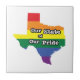 Cette oeuvre colorée présente l'état du Texas créé à partir d'un arc-en-ciel.