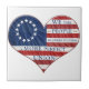 Coloré rouge, blanc et bleu original 13 états Betsy Ross drapeau américain en forme de coeur, avec la première ligne du Préambule de la Constitution des Etats-Unis d'Amérique.