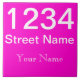 Faites votre propre numéro de maison. Ajoutez votre rue et votre nom ou nom d'entreprise. Arrière - plan rose.