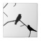 Une conception noire et blanche de silhouette de deux oiseaux d'hirondelle sur une branche. Une des hirondelles regarde l'autre.