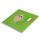 Ce superbe carreau présente un dessin animé drôle d'un œuf avec des bras et des jambes. L'œuf a des bras et des jambes et une petite fissure sur la tête exposant le blanc à l'intérieur. Il a des yeux bleus avec une pupille noire et un grand sourire où le jaune d'œuf peut être vu. La coquille d'œuf semble rugueuse. Cet œuf irlandais patriotique tient fièrement son drapeau et il y a un texte vert sous le drapeau qui dit "c'est tout sur le craic". Ce design amusant est idéal pour la Saint-Patrick ou pour les hommes et les femmes irlandais fiers.