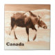 Image monochrome (marron) d'un orignal de vache marchant dans la neige. Le texte "Canada" apparaît également. Les orignaux sont des résidents à l'année dans de nombreuses collectivités du Nord. Ici à Anchorage il y a environ 1500 animaux, ainsi que des loups, des ours bruns et d'autres animaux sauvages.Ils sont généralement bien élevés. Ils traversent souvent les rues aux passages piétons après avoir attendu un signal de marche. D'une photo d'une orignale qui a traversé ma cour.