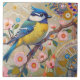 Carreau Oiseau bleu Tit avec touft Fleurs de printemps ros