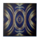 This ceramic tile design features a luxurious and symmetrical composition of interlocking oval and arc shapes rendered in radiant gold. The intricate golden lines contrast strikingly against a deep navy blue background, subtly patterned with floral motifs for added texture and depth. The design emphasizes elegance and balance, with a central diamond-shaped motif surrounded by flowing curves and arches, creating a harmonious blend of geometry and fluidity. Perfect for spaces aiming to exude refinement and timeless charm, this tile adds a touch of opulence and sophistication to any setting.