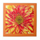 Carrelage en céramique dans une photo closeup d'une fleur d'aster, dans les tons orange, avec un centre jaune doré