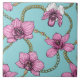 Motif vectoriel à la main avec fleurs d'orchidées et chaînes d'or