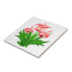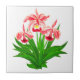 Carrelage en céramique sur l'illustration numérique d'un plante d'orchidées sauvage, à base d'art botanique vintage, avec des fleurs dans les tons pastel à rose corail profond, et vert foncé feuilles