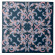 Elevate your interior décor with this luxurious ceramic tile featuring an intricate floral filigree design set against a rich midnight blue background. Delicate scrolls, symmetrical leaves, and botanical flourishes in soft pink, sky blue, and warm terracotta create a sophisticated balance of elegance and artistry. Inspired by classic ornamental motifs, this design blends traditional craftsmanship with modern color harmony, making it ideal for stylish backsplashes, statement walls, bathroom accents, or decorative tile installations. Its detailed linework and harmonious palette add depth, charm, and timeless beauty to any space.