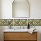 Discover the enchanting beauty of this Art Nouveau-inspired ceramic tile, featuring an ornate scarab beetle adorned in rich emerald, teal, and shimmering gold. The intricate details and flowing lines evoke a sense of ancient mystique and timeless elegance. This stunning piece, framed by decorative borders and botanical elements, is perfect for adding a touch of bohemian luxury or mystical charm to any space. Its unique design makes it a captivating focal point for walls, backsplashes, or decorative accents, bringing a touch of the extraordinary into your home.