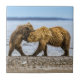 Un ourson brun côtier jouant avec sa maman sur la rive du ruisseau Silver Saumon, dans le parc national Lake Clark, en Alaska. Le ruisseau Silver Saumon abrite un sous-ensemble d'ours locaux, dont la plupart sont des mères avec des oursons et des juvéniles, bien que les mâles plus gros puissent être vus pendant la saison de reproduction et d'autres fois.