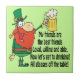 Les caractéristiques de conception du jour de ce St Patrick un lutin vert tenant une tasse de bière et l'énonciation "mes amis sont les meilleurs amis, disposé et capable loyaux. Laissez-maintenant nous obtiennent au boire ! Tous les verres outre de la table !"