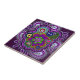 Un carrelage au design psychédélique coloré avec des fleurs abstraites, un coeur et un signe de paix. Tout est entouré de paisley violet.