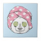 Panda mignon dans une serviette avec des concombres sur ses yeux.