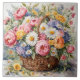 Carreau Panier en osier aquarelle avec fleurs d'été