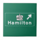 Un panneau routier canadien original annonçant la ville de Hamilton.