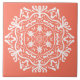 Ce mandala blanc est posé sur une papaye orange ou un arrière - plan saumon. Les couleurs sont claires et chaudes. Une partie de la collection Erghenn Mandala.