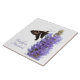 Joli carreau en céramique fleurie ; papillon sur une fleur pourpre d'algue corsée.