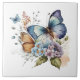Papillons bleus et bronzés aux fleurs violettes et bleues.