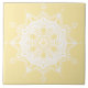Ce mandala blanc est assis sur un arrière - plan jaune clair. Les couleurs sont joyeuses et paisibles. Une partie de la collection Fenten Mandala.