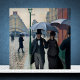 This beautiful vintage look decorative tile features a portion of Paris Street in Rainy Weather, a fine art canvas print by Gustave Caillebotte. In French, the work is called Rue de Paris, temps de pluie), and it's a large 1877 oil painting. Believed to be his best known work, it shows people walking through the Place de Dublin, then known as the Carrefour de Moscou, at an intersection to the east of the Gare Saint-Lazare in north Paris. The image is in the public doman and provided by the Art Institute of Chicago Open Access program.