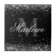 Parties scintillant argentée élégante tuile décorative Monogramme noir et blanc avec un nom de script de calligraphie personnalisable et modèle monogramme gras.