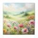 This artwork captures a serene wildflower meadow drifting through soft hills and open skies, painted in a gentle watercolor style that feels light, airy, and immersive. Layers of pastel pinks, blush tones, warm yellows, and fresh spring greens flow together with loose brushstrokes, creating a dreamy landscape that feels both peaceful and alive. Delicate blooms sway across the foreground while distant trees and rolling fields fade softly into the background, giving the scene a calm sense of depth and openness. The overall mood is tranquil, romantic, and quietly joyful, evoking slow mornings, countryside walks, and the comforting beauty of untamed nature. Subtle textures and diffused light enhance the watercolor aesthetic, lending the piece a whimsical cottagecore charm with hints of folk and boho influence. The balanced color story feels soothing without being muted, making the scene feel warm, inviting, and timeless. This visual composition celebrates nature’s softness and simplicity, offering an enchanting escape into a pastel meadow where calm and imagination gently coexist. AI generated artwork.