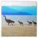 Canada Geese goslings are escorted along the shoreline of Lake Pend Oreille dans l'Idaho nord in adult. This is a typical scene at City Beach park à Sandpoint.
