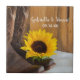 Personnalisez le Carrelage de Mariage de tournesol Pays charmant avec les noms personnels de la date de la mariée et du marié et de cérémonie de mariage pour créer un cadeau de conservation pour les jeunes mariés ou de vous remercier cadeau pour les gardiens de mariage. Ce carrelage rustique chic et mariage, décontracté mais élégant, présente une photo florale d'époque de bottes de cowboy en cuir marron et une fleur de tournesol jaune avec du satin blanc et du bois de grange brun.