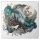 Carreau Paysage de loup et lune or Turquoise
